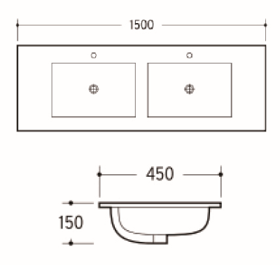 PVC 1500 x 460 x 880H with kickboard; White gloss vanity; 2 doors & 4 drawers; Fingerpull handleless & all soft close; Internal shelf; 100% Waterproof PVC superior quality finish. Chrome pop up wastes supplied;