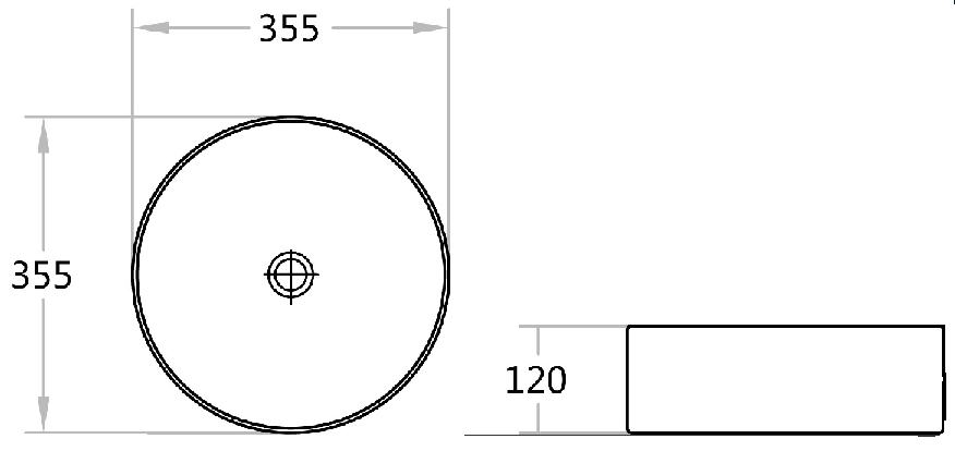 Round white vitreous china above counter basin; No tap hole; 32mm waste required;