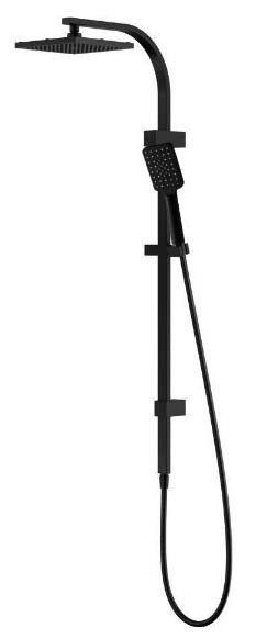 MATTE BLACK Deluxe rail-shower with diverter; Square slider on long brass rail, Slim brass shower head and 3 function handset shower;